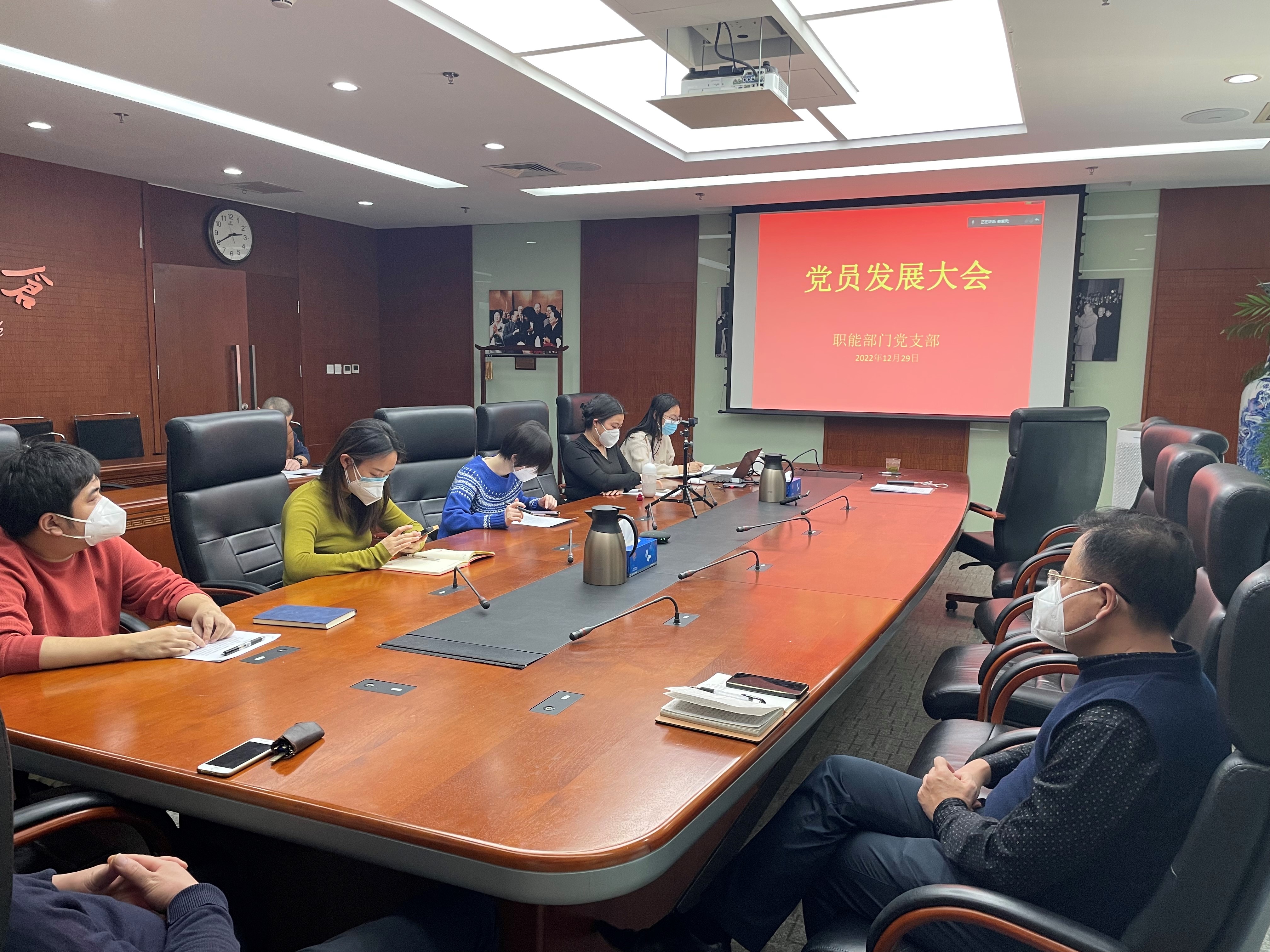 12月29日下午,集團職能部門黨支部采取線下和線上的形式召開第四季度全體黨員大會,審議中共預(yù)備黨員趙巖隆、賴惠亮同志轉(zhuǎn)正事宜,以黨員講黨課的方式集體學(xué)習(xí)貫徹黨的二十大會議精神,黨小組代表、青年干部理論學(xué)習(xí)小組代表交流談體會。會議由職能部門黨支部書記賈秀伶同志主持,職能部門全體黨員、發(fā)展對象、入黨積極分子、青年代表參會。集團黨委書記、董事長李金生同志對大會進行了指導(dǎo)。